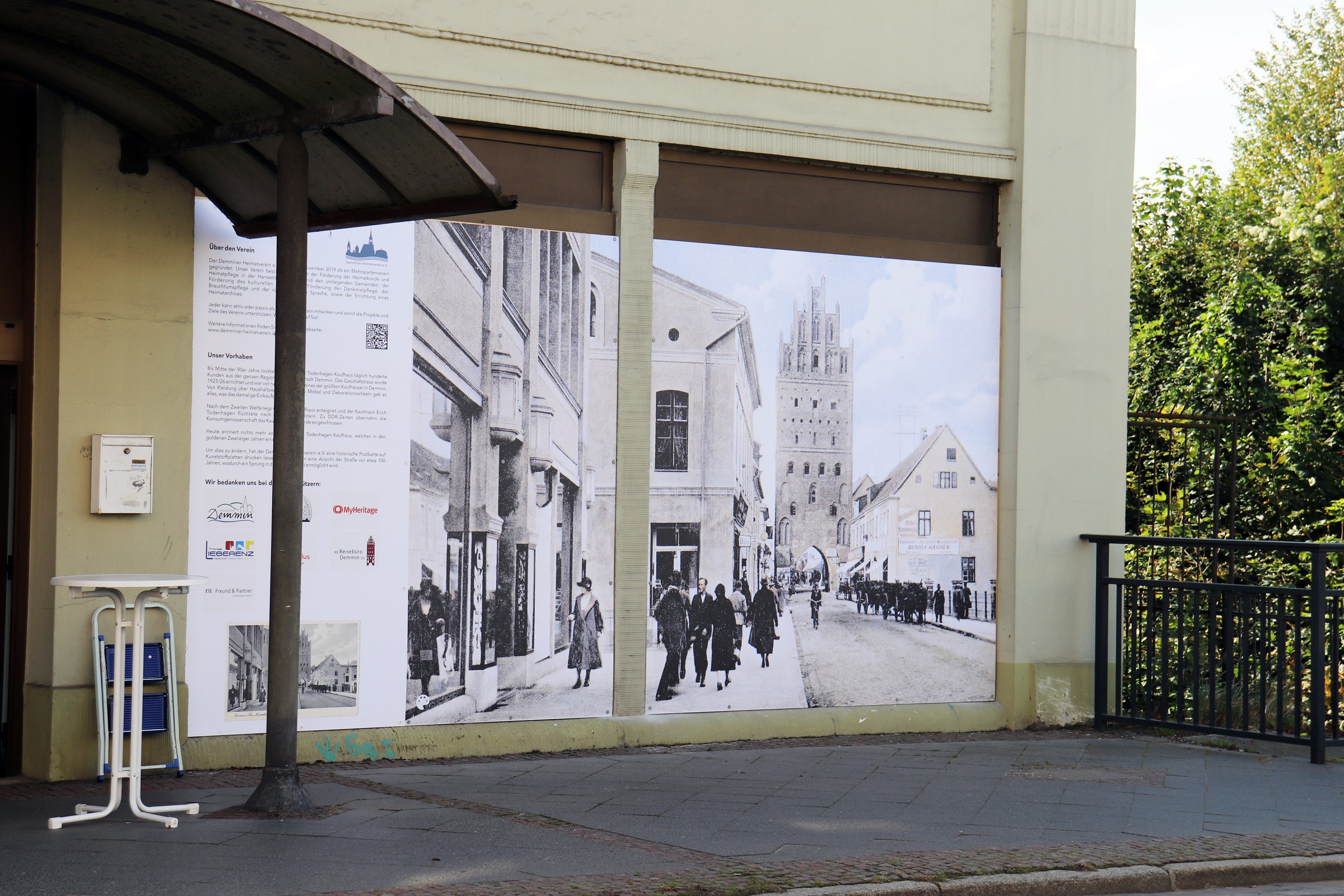 Um dies zu ändern, hat der Demminer Heimatverein e.V. eine historische Postkarte auf 4 Kunststoffplatten drucken lassen. Diese zeigen eine Ansicht der Straße vor etwa 100 Jahren, wodurch ein Sprung in die damalige Zeit ermöglicht wird. Wir bedanken uns vielmals bei allen Spendern und Sponsoren, wodurch dieses Projekt ermöglicht wurde.